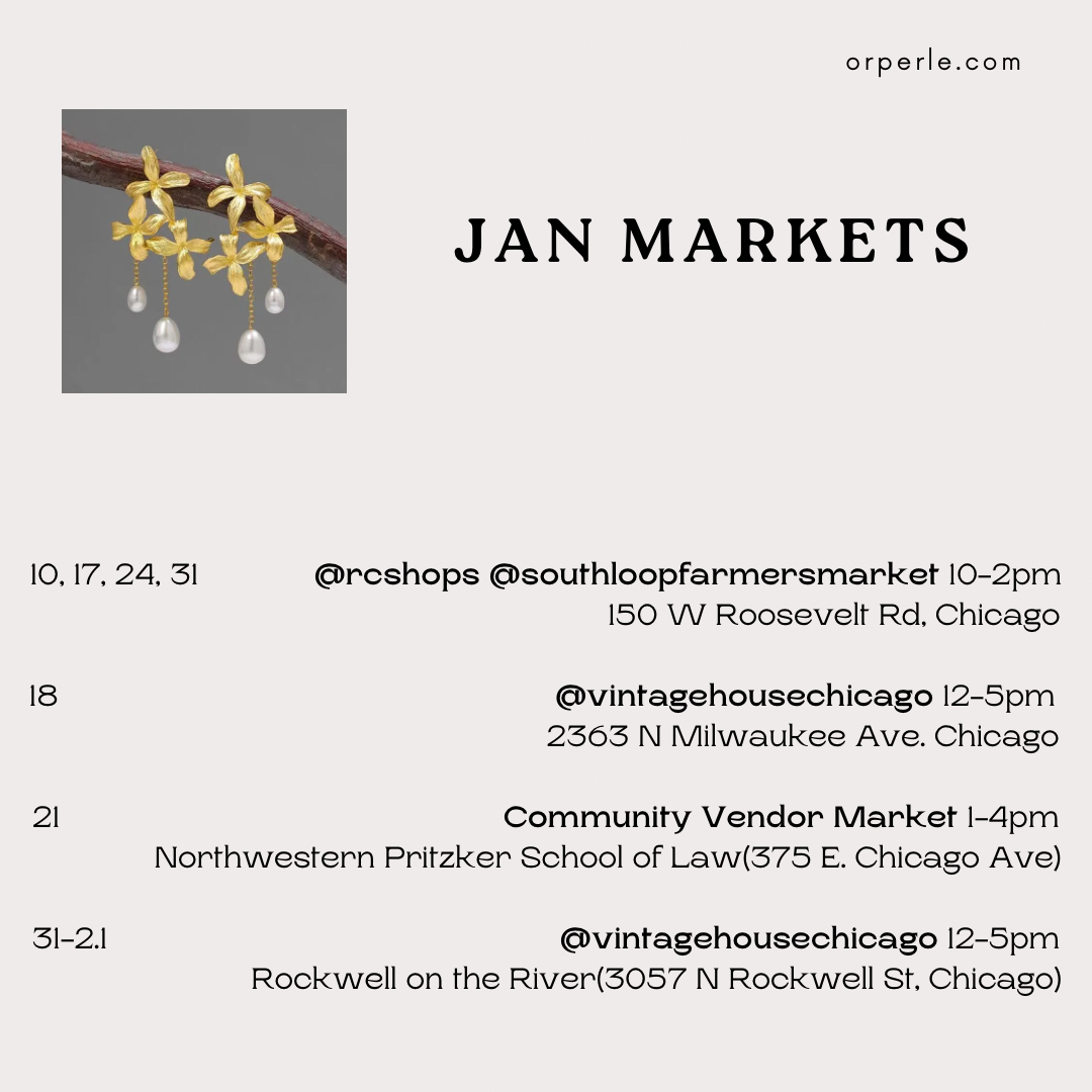 Orperle Jewelry participates in a curated selection of artisan markets and pop-up events throughout the year.